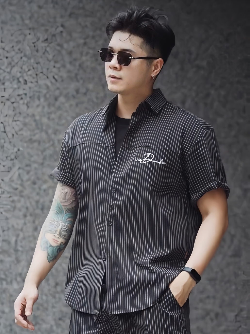 [DAVUBA] BỘ QUẦN ÁO CỔ V NAM KẺ SỌC 2 TÚI CỌC TAY SM142
