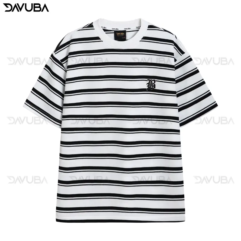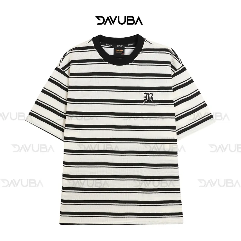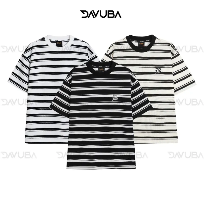 Áo thun kẻ sọc DAVUBA nam nữ cọc tay cổ tròn SM059