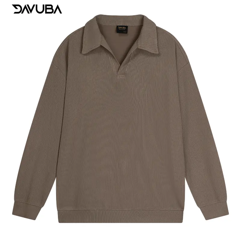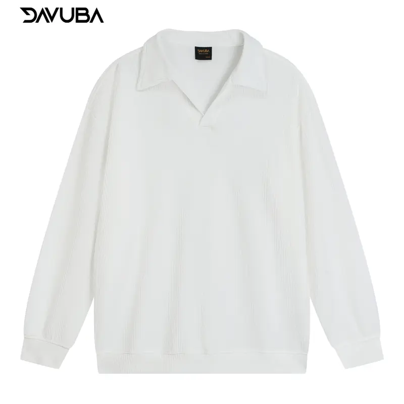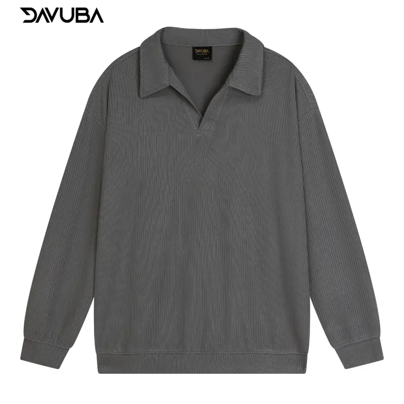 Áo thun tăm cổ V trụ DAVUBA dài tay form rộng SM11