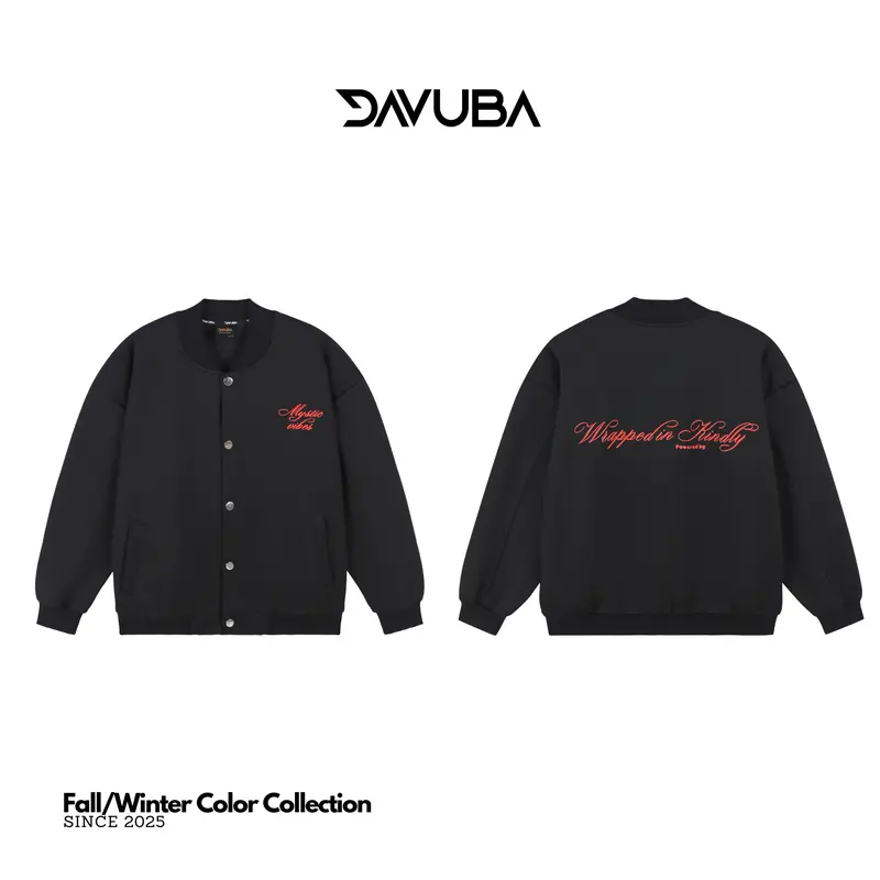 Thương hiệu nổi bật: Áo khoác bomber từ thương hiệu DAVUBA, mang đến phong cách Mystic Vibes độc đáo. 🧥