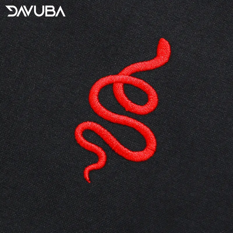 Điểm nhấn nổi bật nằm ở hình thêu rắn đỏ tinh xảo, mang phong cách cá tính, giúp người mặc thêm nổi bật và thu hút ánh nhìn.