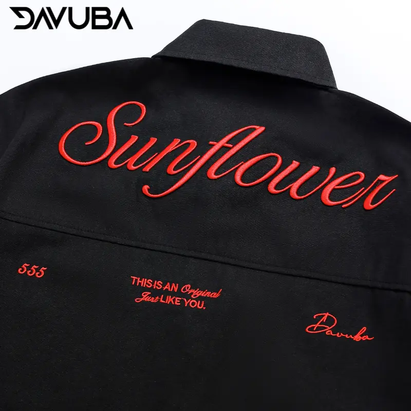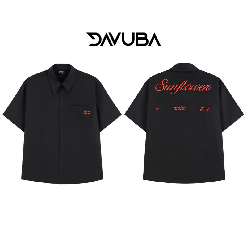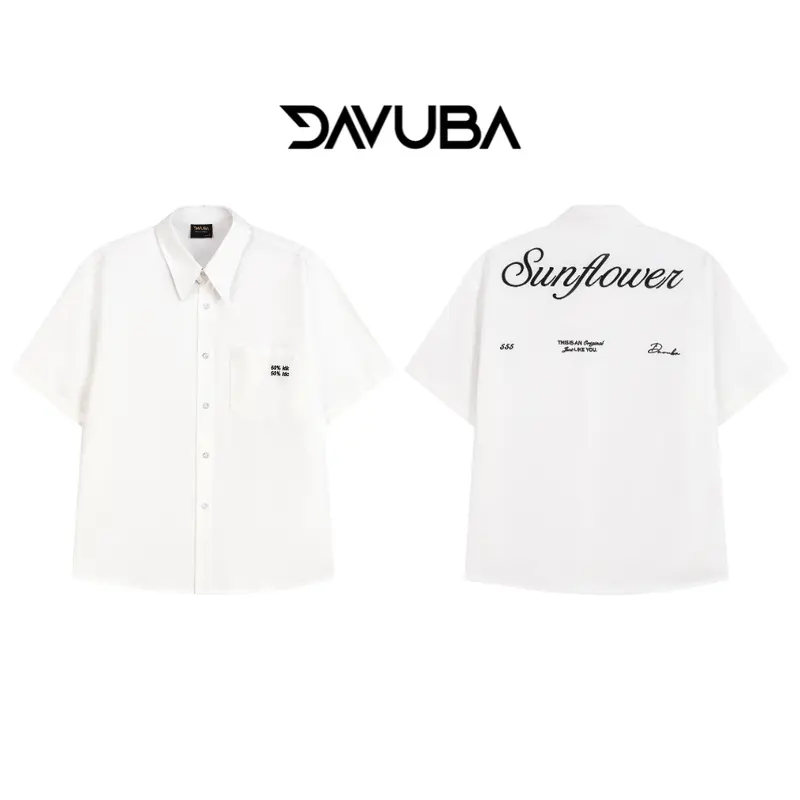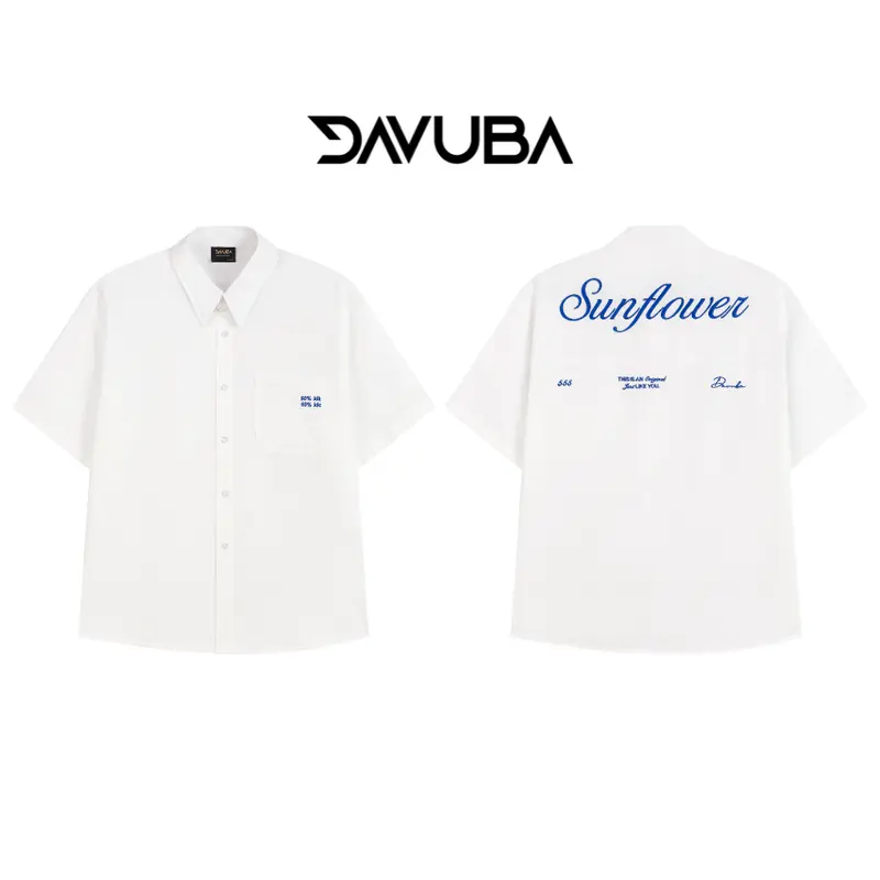 🌻 DAVUBA | Áo Sơ Mi Cộc Tay Thêu Chữ “Sunflower” – Trẻ Trung & Phong Cách